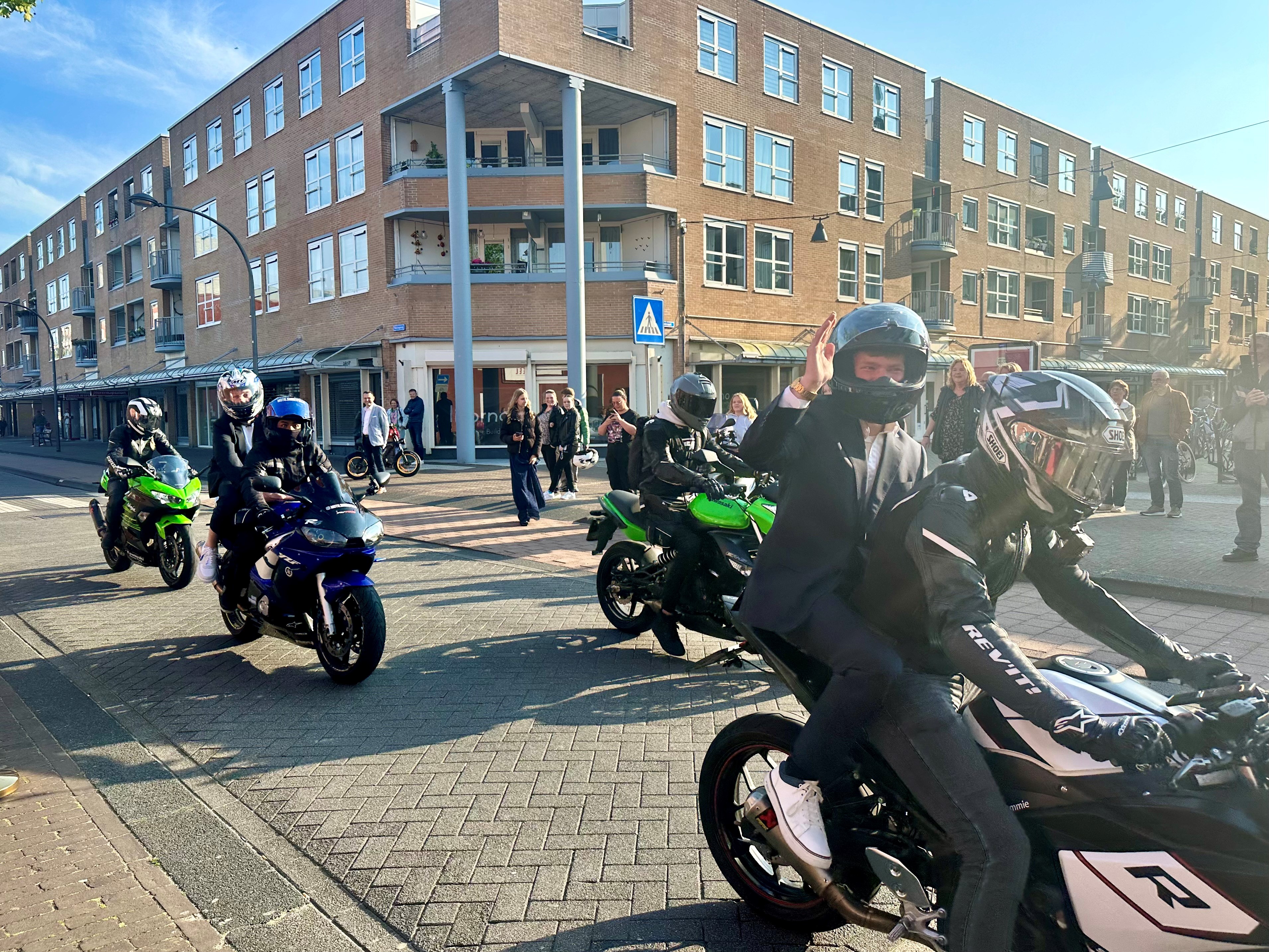Zo’n 140 leerlingen kwamen aan in stijl; galajurken, smokings en bijzondere vervoersmiddelen zoals motoren, een brandweerwagen en politieauto, oldtimers en zelf paarden. Ze werden onder luid applaus ontvangen door hun leerkrachten en publiek langs de kant. Vervolgens mochten ze poseren onder de ballonnenboog waar er foto’s werden gemaakt van de prachtig geklede leerlingen.