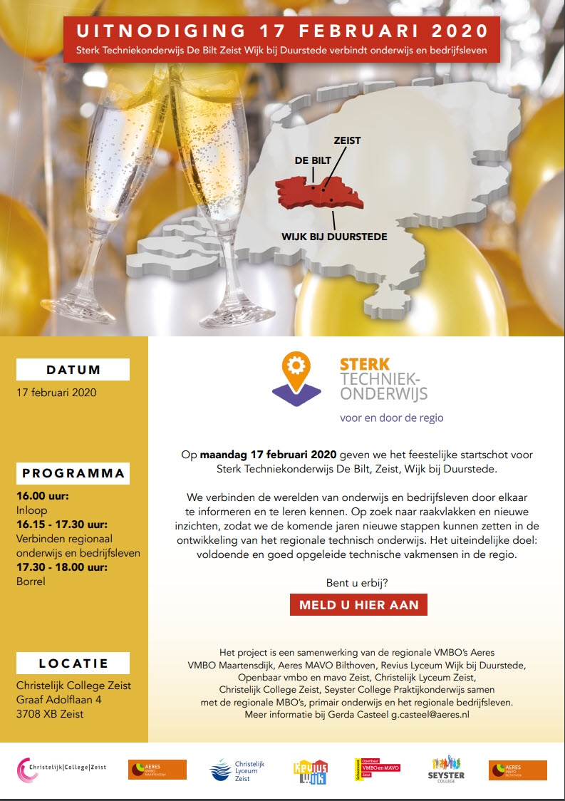 Een prachtige uitdaging die de regio met enthousiasme, met elkaar aangaat. Het project is een samenwerking van de regionale vmbo’s Aeres VMBO Maartensdijk, Aeres MAVO Bilthoven, Revius Lyceum Wijk bij Duurstede, Openbaar vmbo en mavo Zeist, Christelijk Lyceum Zeist, Christelijk College Zeist, Seyster College Praktijkonderwijs samen met de regionale mbo’s, primair onderwijs en het regionale bedrijfsleven.